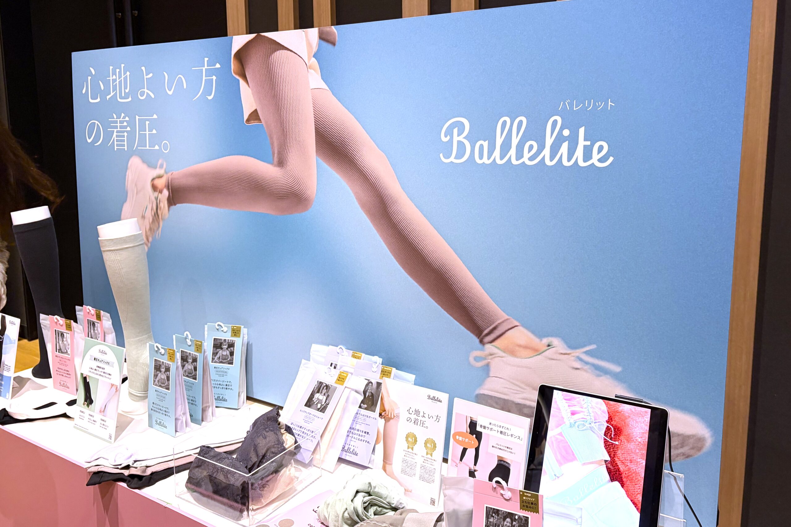 Ballelite(バレリット)は、マッシュグループとグンゼがタッグを組んで誕生したコンフォートウェアブランド。「立ち仕事で疲れる脚を、少しでも楽にしたい」という想いから生まれた。