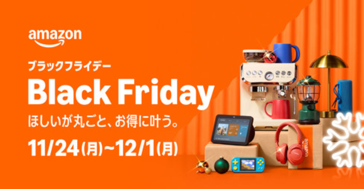 Amazon最大のセール「Amazonブラックフライデー」は、11月24日(月)0時~12月1日(月)23時59分までの8日間。21日(金)0時から先行セールがスタートします。幅広いカテゴリーの人気商品や売れ筋商品などを特別セール価格で販売します。