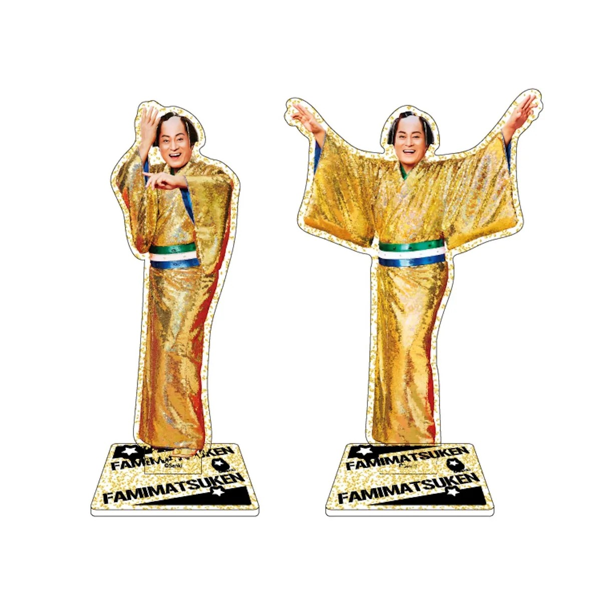 ゴールドラメが入ってゴージャスなマツケンのアクリルスタンド。「ビバ!サンバ!」と「オレ!」の2種類を用意。