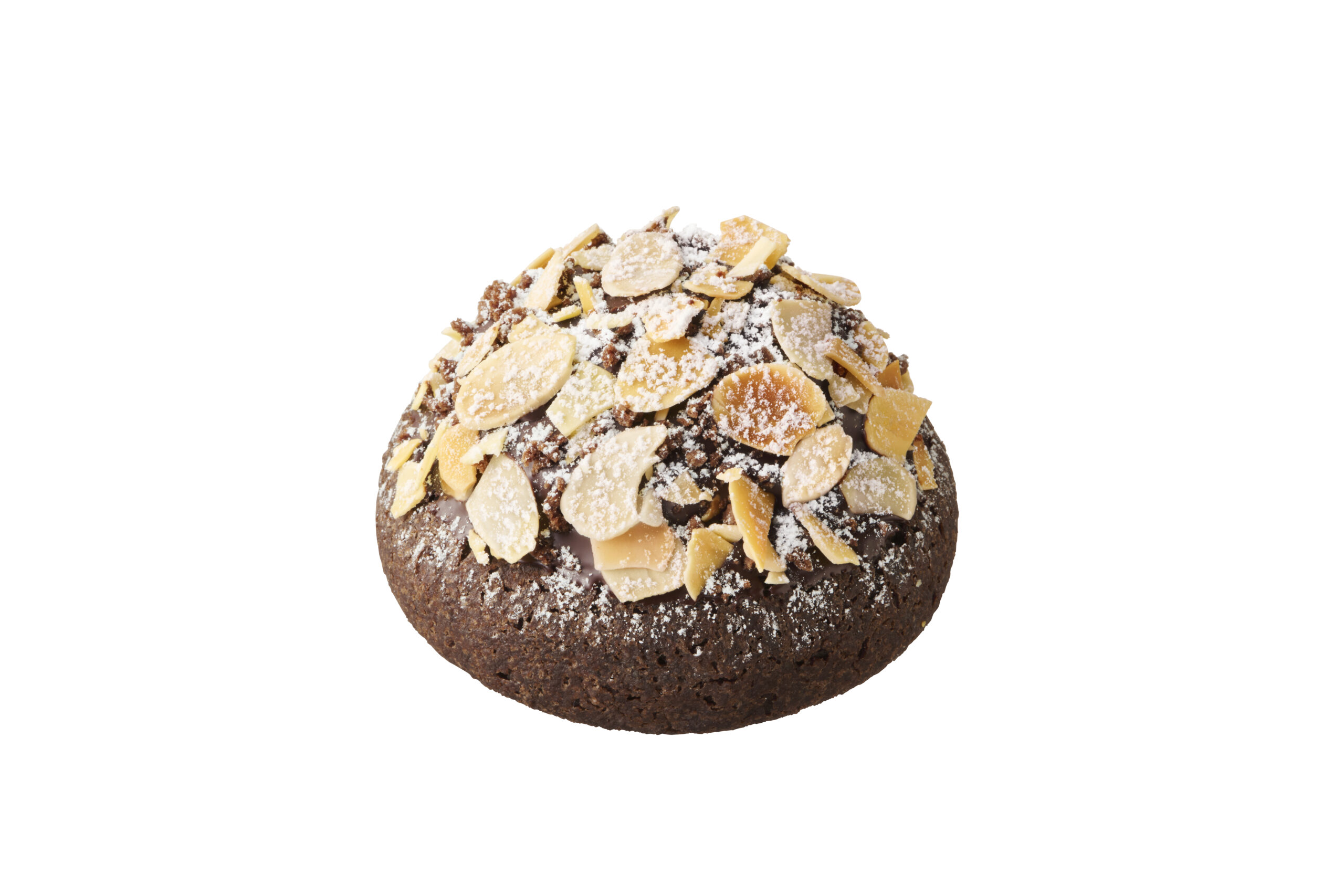 トリュフショコラをイメージしたなめらかな食感のショコラドーナツ生地にガナッシュクリームとプラリネホイップを重ね、チョコレートをコーティング。ローストアーモンドとチョコクランチをトッピングして仕上げました。