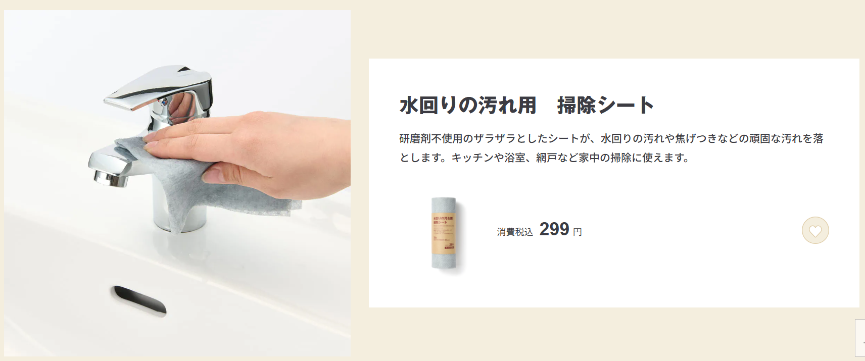 日用品1位・水回りの汚れ用 掃除シート(税込299円)