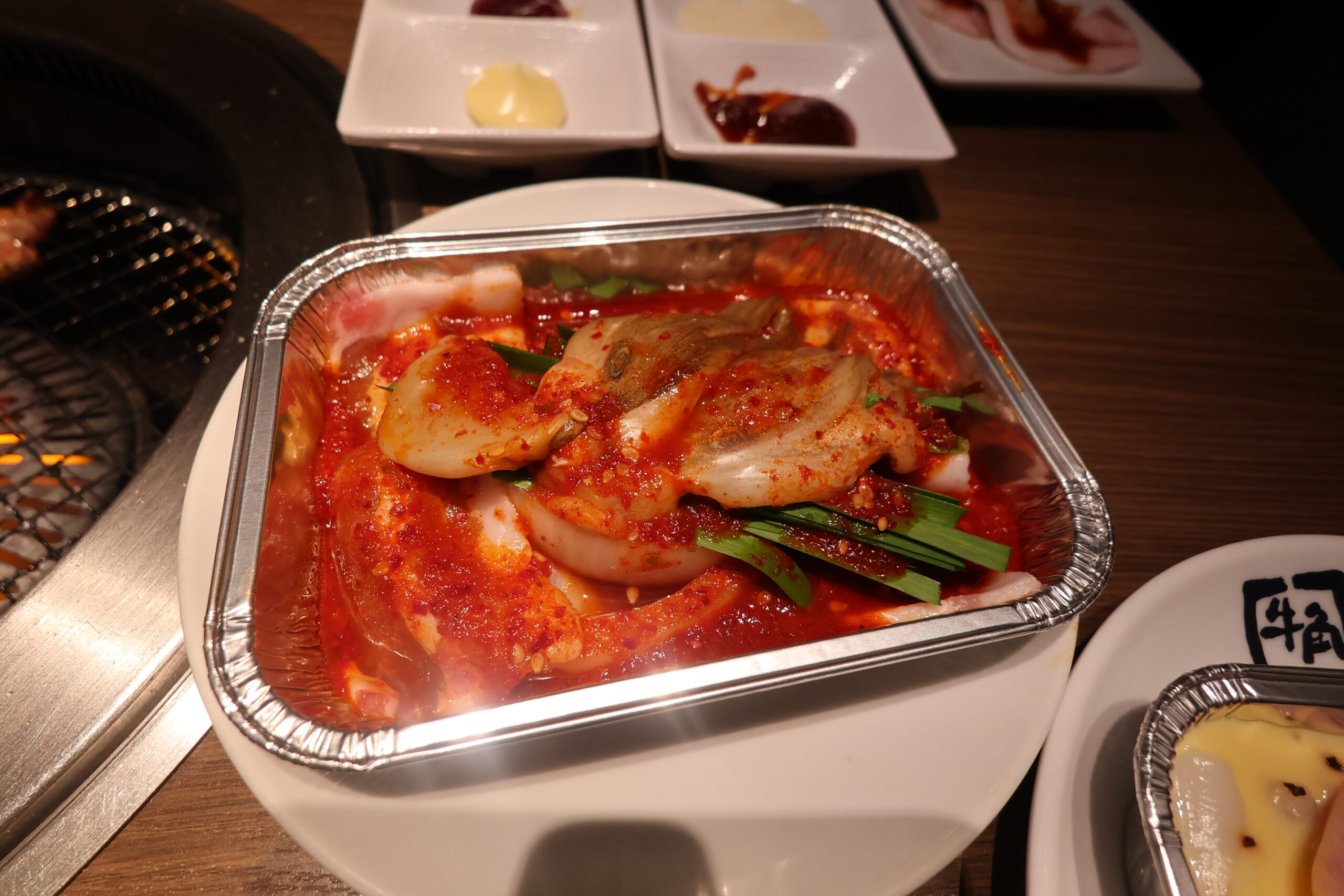 牛角のメニュー開発担当者は、「チュクミは本場の辛めな味付けに近づけるため、何度も試行錯誤して開発。屋台風の炒めを焼肉屋の七輪で再現するのが難しく、韓国の業者様から本場のジャン(韓国の調味料)を仕入れて配合し、工夫した。