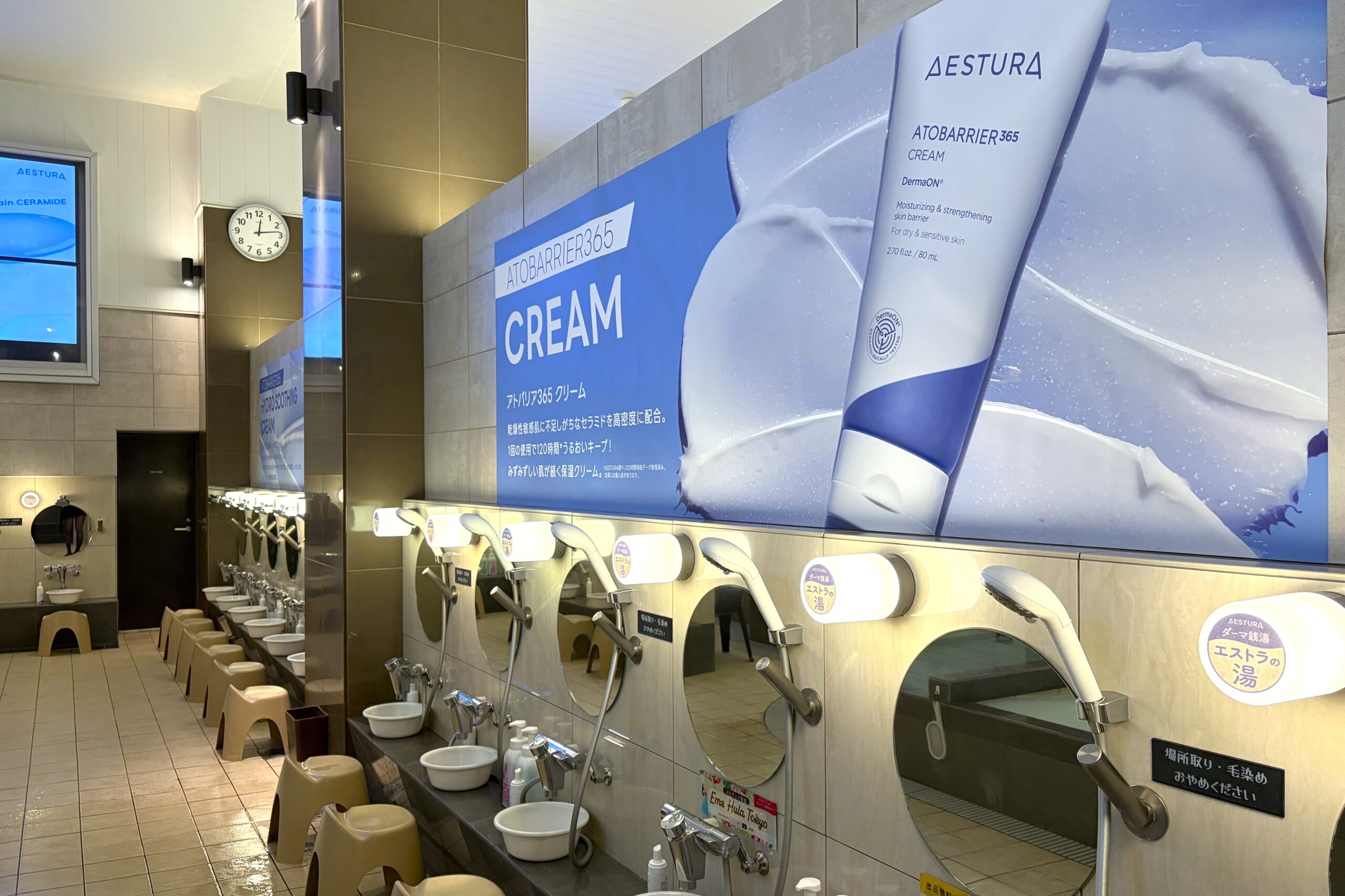 また、脱衣所には「アトバリア365」シリーズ(洗顔、化粧液、美容液、クリーム)をラインアップ。AESTURAを初めて手に取る方にも、その魅力を存分に体感していただける環境を整えました。