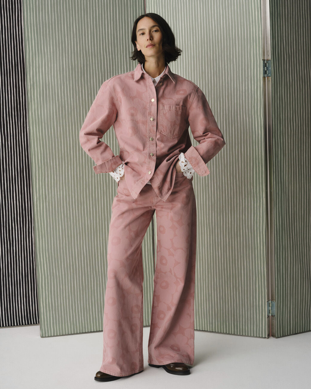 マリメッコを象徴するフラワープリント「ウニッコ」は、デニムに落とし込むことで新たな表情を獲得。ブランドのアイコンを日常着として楽しめる点が魅力だ。